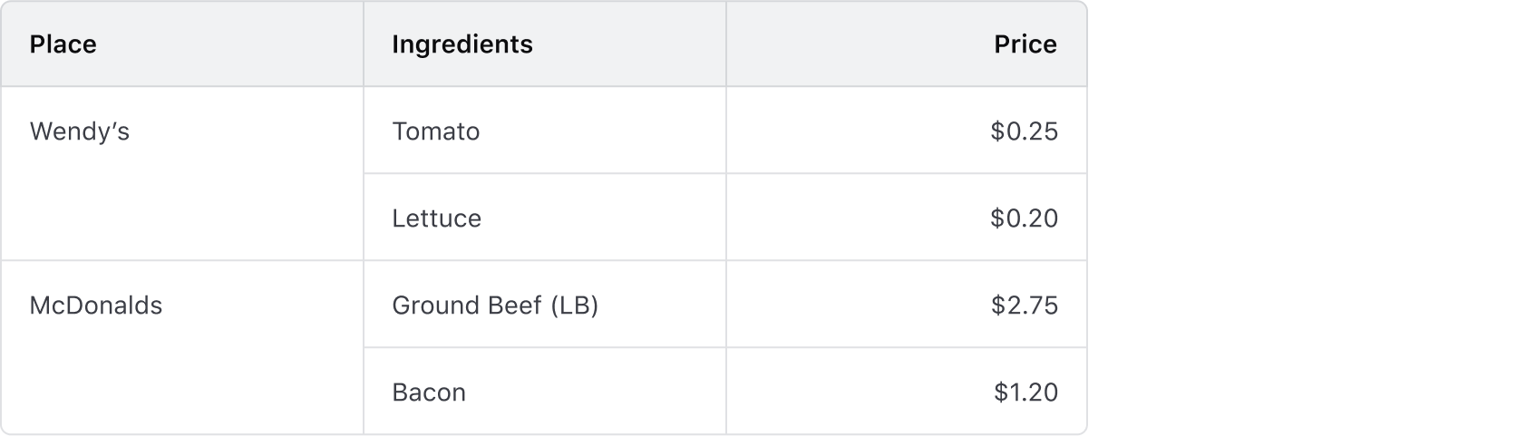 The alignment of text and content within an Advanced Table impacts the readability and speed at which users can effectively parse the information. The proper alignment method depends on the content within the cell, and relative position within the advanced table.